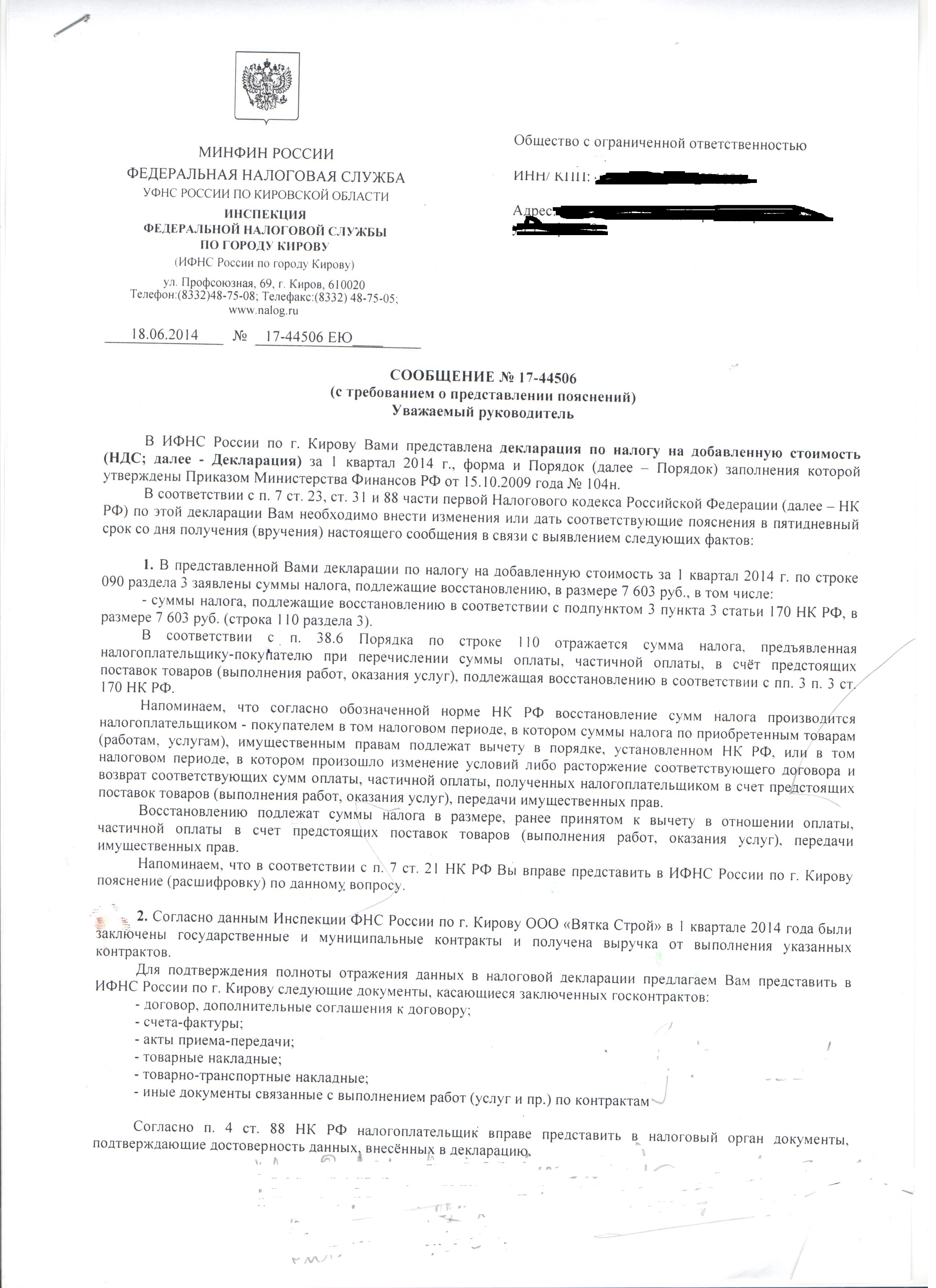 По п.1 они запрашивают пояснения. Да суммы к восстановлению были в 1 квартале. Документы поступили во 2 квартале от них. Но в реальности документы от них датированы еще декабрем 2013г. Просто документы до меня не дошли. Естественно сч/ф от них на аванс не было, так как по их то бумагам они все в срок отписали. А я к восстановлению поставила. Вот что мне сейчас написать и что приложить, какие бумаги? Приход от них декабрем? А написать на них. что получены в апреле?