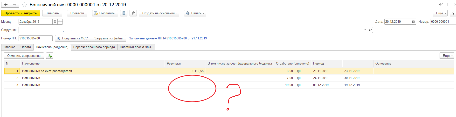 Отчего ЗУП 3.1 может не считать в больничном суммы пособия за счёт ФСС?