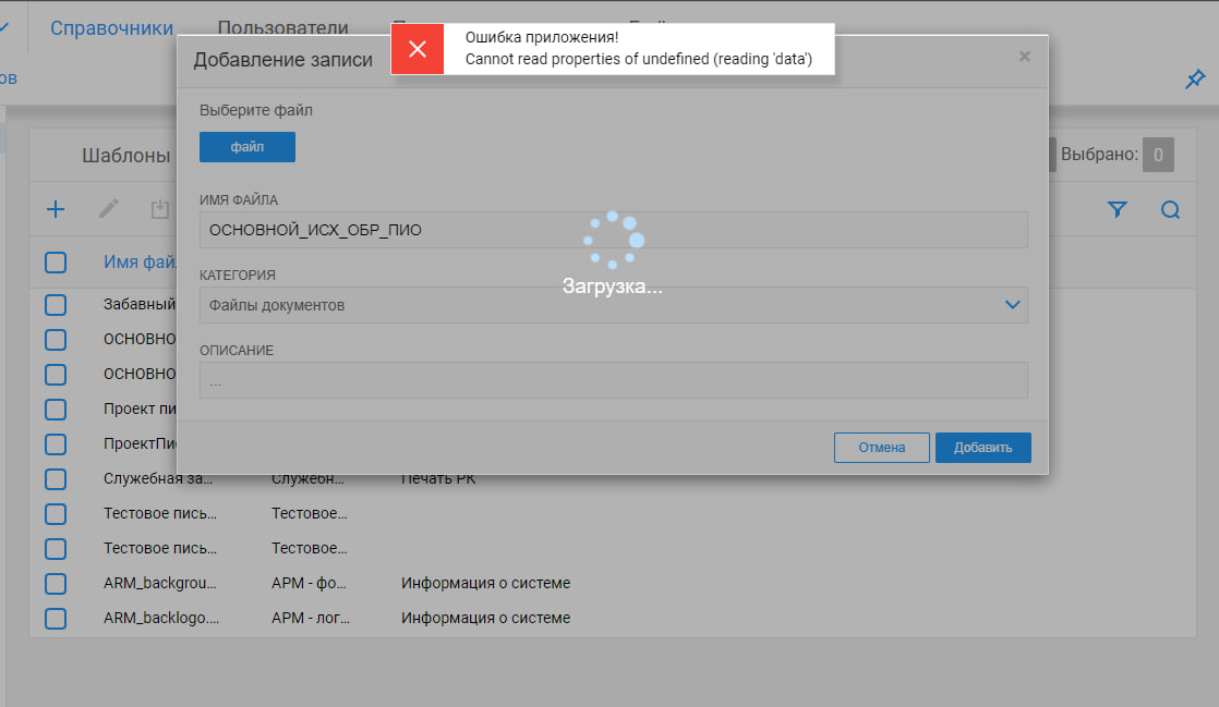 Может кто-нибудь здесь работает с СЭД Дело и сталкивался с подобной проблемой при загрузке Шаблонов? Буду благодарен если дадите направление куда копать..