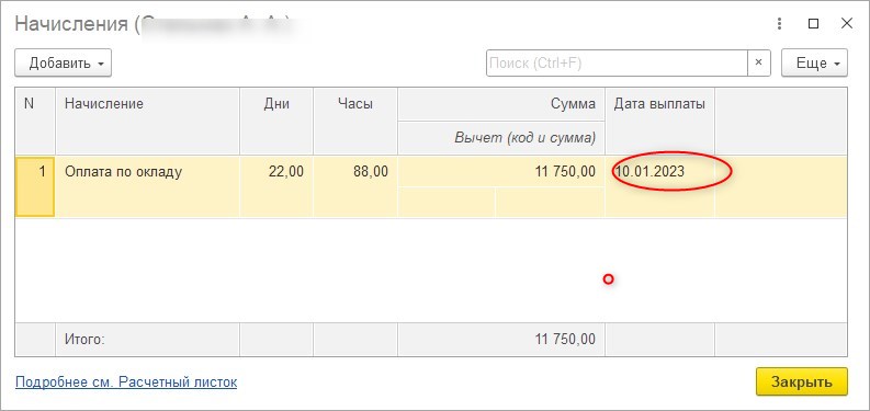 Среда, Это может быть в ЗУП внизу слева, а в 1С бухгалтерия, нужно нажать на саму сумму начисления и откроется окошко, в котором стоит 31.12.2022, эту дату нужно руками исправить на дату, когда выплачивается зарплата в январе.