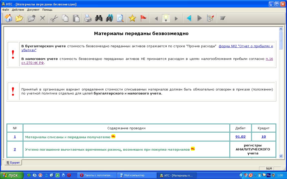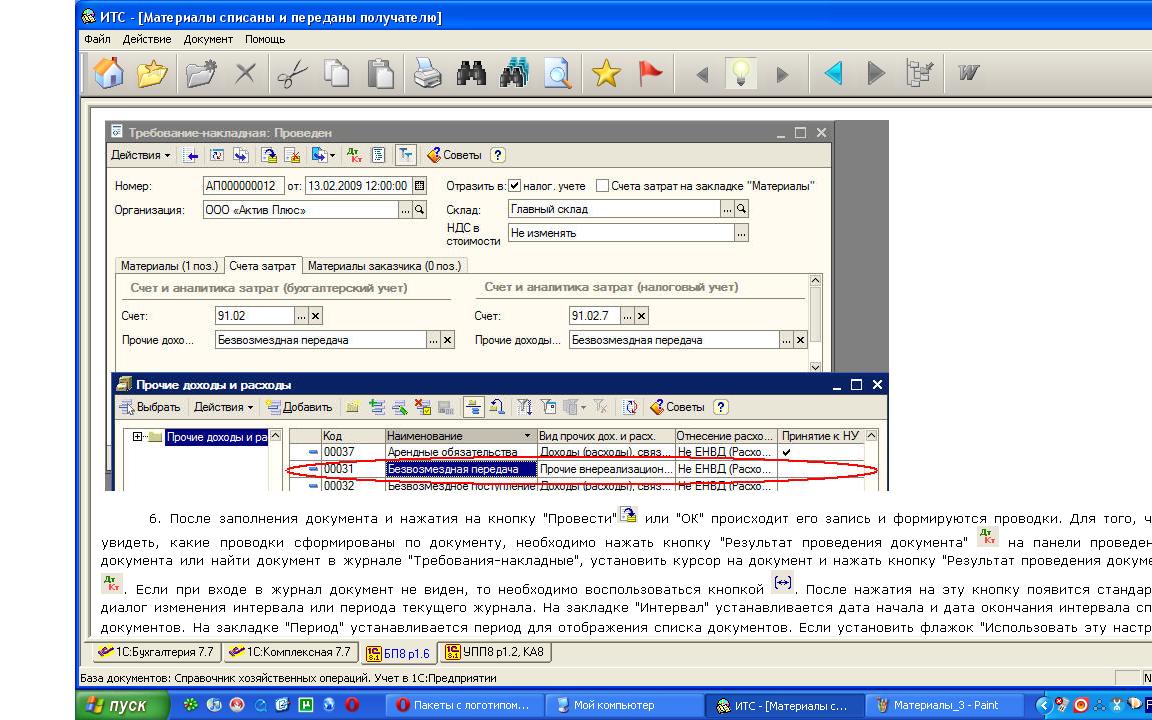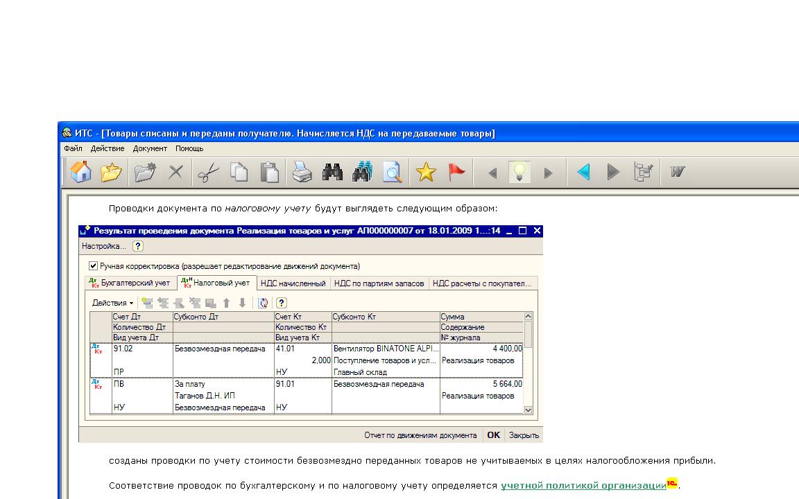 Анэт вот что я нашла на диске ИТС про безвозмездную передачу материалов....