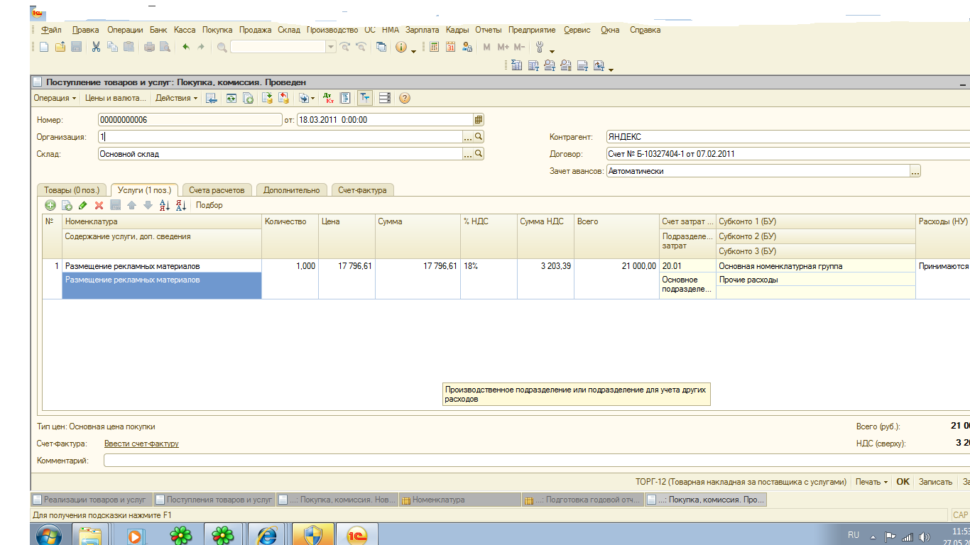 Обнаружены обороты по дебету счетов 20, 23, 25, 26, для которых не указано подразделение в документе Передача материалов в эксплуатацию 00000000003 от 16.03.2011 0:00:00. Укажите подразделение затрат в этом документе" Подскажите, пожалуйста, где это нужно указывать, в документе "передача материалов в эксплуатацию" нет такой строки. |