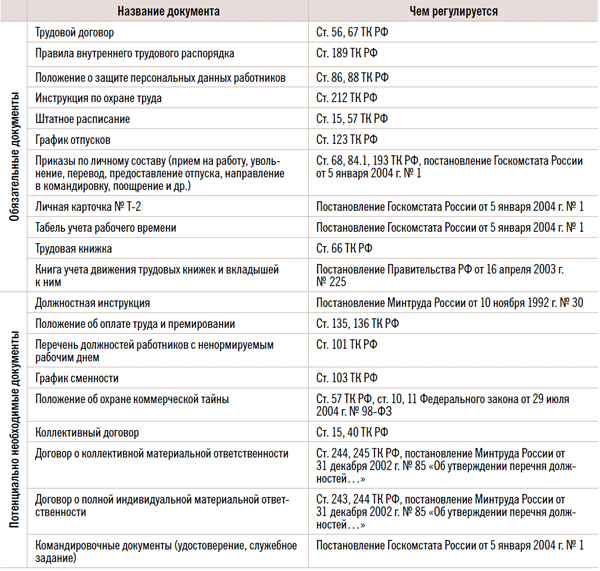 Перечень обязательных и потенциально необходимых документов в кадровом делопроизводстве и чем регламентируются