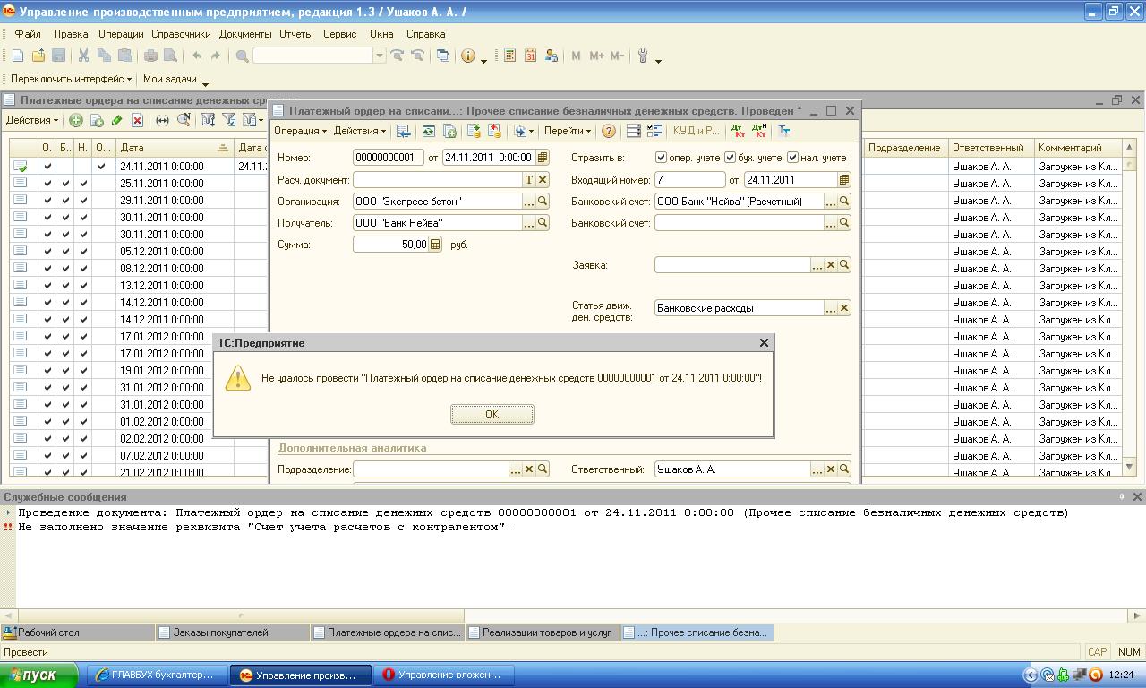 Вот такое выскакивает при проведении документа. я понимаю что где то надо заполнить "Счет учета расчетов с контрагентом"!, но где никак не могу найти. |