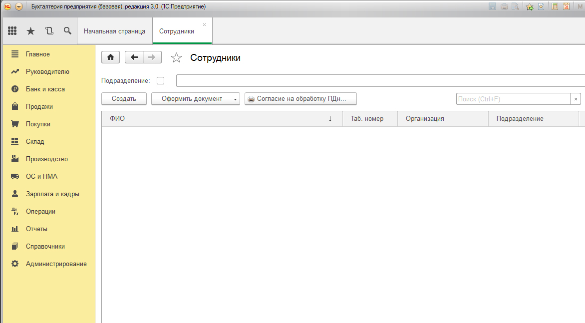 Обновили программу 1С 8.2 Предприятие базовая до 8.3. Приобрели программу 1С 8.3 ЗуП базовая для ведения учёта сотрудников. Трудоустроили, и завели все документы на одного человека. На числили аванс, зарплату, выплаты в фонды. Настроили синхронизацию, согласно инструкции высланной техподдержкой по нашей просьбе. Сделали синхронизацию. Все документы по начислению зарплаты отображаются. Но в 1С 8.3 Предприятие в вкладке "Сотрудники" пусто. Вопрос, это потому что стоит галочка в 1с 8.3 Предприятие вести учёт сотрудников во внешней программе? Или что то другое? |