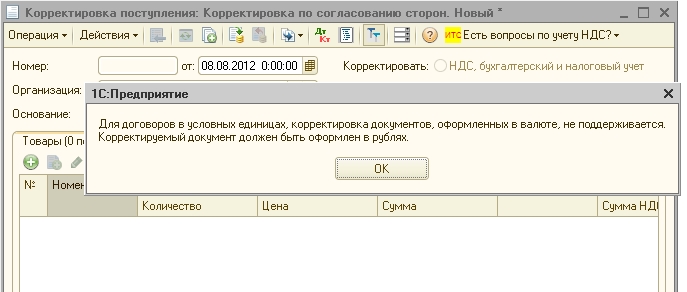 Как в 1 С 8.2 сделать корректировочный счет-фактуру по договору в у.е.?