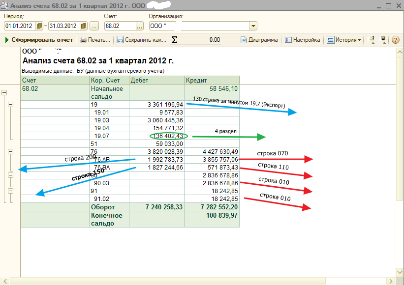 Заполнение по строкам нужно смотреть не по книгам а по счетам учета Открываете Анализ 68.2 в разрезе субсчетов и заполняете декларацию, конечно если Вы уверены что все правильно разнесено. Да ![]() Да Да Оборот по 19 сч. (кроме Экспорта) Да Да Вот скрин посмотрите для примера |