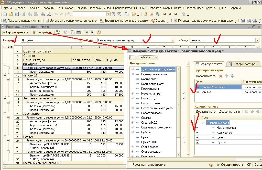 Доброе утро,Уважаемые!Подскажите,пожалуйста, как в "1с бухгалтерии 8.2" вывести результаты реализации по каждому контрагенту по номенклатуре, например: Контрагент: ИП Пупкин