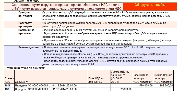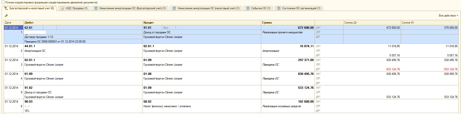 Продавала ОС с небольшой прибылью. Сделала документом "Передача ос". При этом проверка выдает ошибки. В декларации НДС и прибыли суммы попадают. На что могут влиять эти ошибки? ОС покупалось в лизинг, поэтому там вылезли НУ и БУ. Проводки по "Передаче ОС" тоже на картинке. |