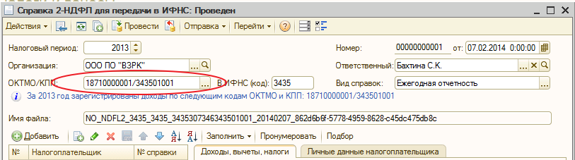 Когда пытаюсь сформировать справки появляется ошибка, что не указан ОКТМО - но операцию по переходу в программе я выполнила! Где еще посмотреть? |