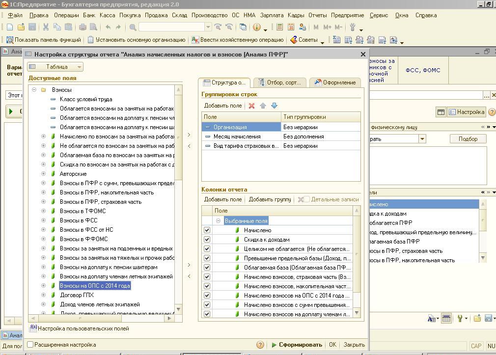 В открытом отчете нажимаете Настройка структуры отчета и слева в папке Взносы берете поле Взносы на ОПС с 2014 года и переносите его в таблицу Колонки отчета ... всё