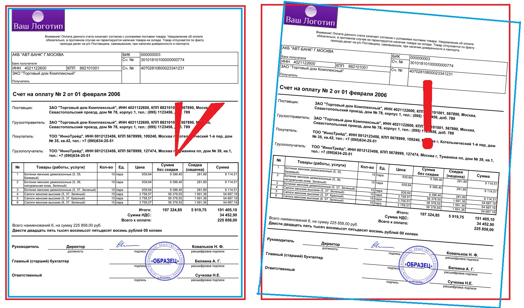 Возможны небольшие изменения печатной формы по желанию заказчика (например текста в шапке счета).