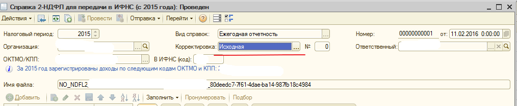 По умолчанию Исправительный 2НДФЛ