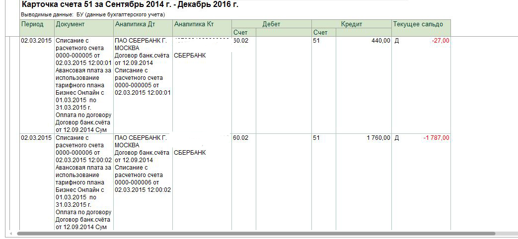 По 51 красным быть не должно, вот у вас первые операции Списание за использование тарифного плана, для того, чтобы списать, там же сначала должны появиться деньги, может быть пропустили внесение денег на р/счет.