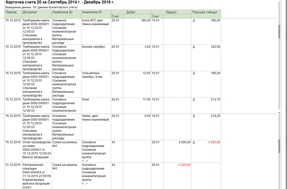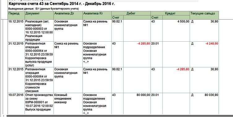 С 51 счётом разобралась. Там всё из за времени вышло, списание 12:00:01, поступление 12:00:10 , поменяла местами время, и цифры перестали быть красными. Счёт 20 - это основное производство. чтобы передать материалы я завожу требование накладная, где счёт учета 10. В номенклатуре нет ( аренды, зп) Вопрос... для того чтобы сделать изделия которые поступают на 43 счёт, и написать плановую цену ( в которую входит зарплата, аренда, свет) , я завожу отчёт производства за смену. Как учесть зарплату, свет , аренду? На 20 счёте у меня горели красным цифры, которых в реальности не было. Когда я в отчёте за смену поставила плановую цифру с 20 счёта, конкретно только материал, всё стало белым, а как же зарплата и аренда... По 98 счёту так и остались цифры красные, вы пишите это нормально, извините за дотошность а почему нормально? |
