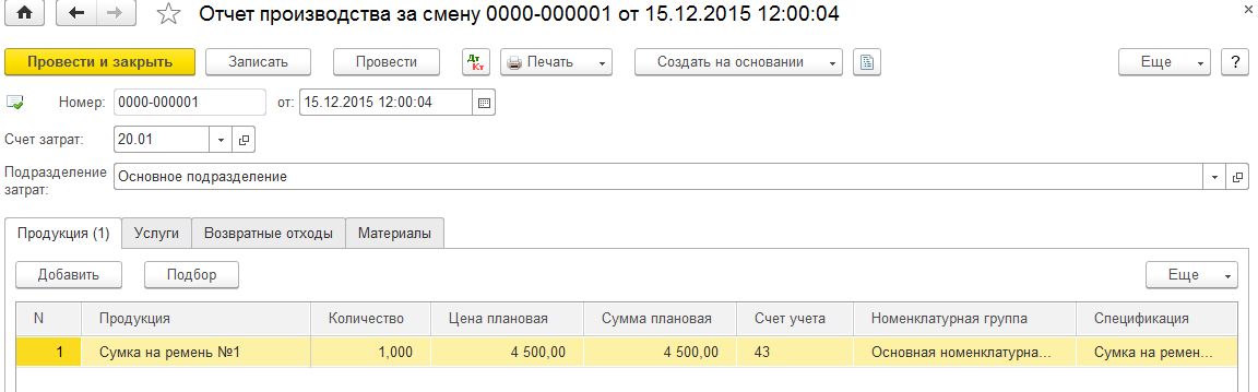 Создайте копию базы для начала, чтобы она была тренеровочной. В этой копии базы и потренеруйтесь. При приходовании аренды счет затрат пропишите 20, при начислении зарплаты счет затрат напишите 20, т.е. чтобы и аренда и зарплата со взносами были проводками Дт 20 Кт 60 и Дт 20 Кт 79, 69 Дальше сделайте спишите материал Дт 20 Кт 10, я вообще требование накладную не делаю, я сразу в отчете производства на вкладке материалы прописываю материалы, которые использую для изготовления продукции, проводки получаются Дт 43 Кт 20 и Дт 20 Кт 10. Пропишите плановую себестоимость, пробуйте разную, попробуйте прописать плановую по стоимости материала, попробуйте плановую с учетом аренды и зарплаты, как вы расписали 300 руб, дальше закройте месяц, посмотрите все с 20 списалось или как ? или какие то суммы в сальдо остались. Пробуйте. У меня когда время будет, я в тренировочной базе тоже попробую, я раньше другие затраты не относила на 20 счет, потому что у меня мало было изготовлении продукции, поэтому я только себестоимость материалы учитывала.