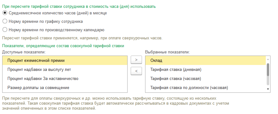 В редакции 2.5 пересчет тарифной ставки (например, для расчета сверхурочных, ночных и т.п.) производится только исходя из оклада работника. А в редакции 3.1 можно для этих целей учесть не только оклад, но и любые другие начисления – доплаты, надбавки и пр.