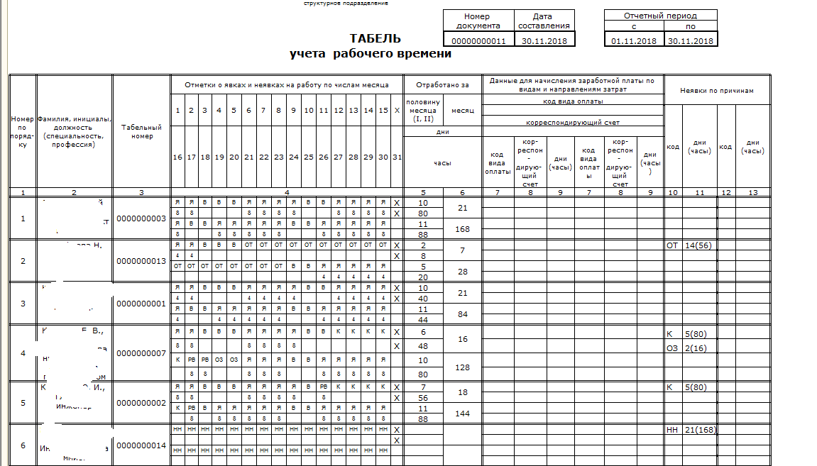 По умолчанию Табель учета рабочего времени в ЗУП 2.5