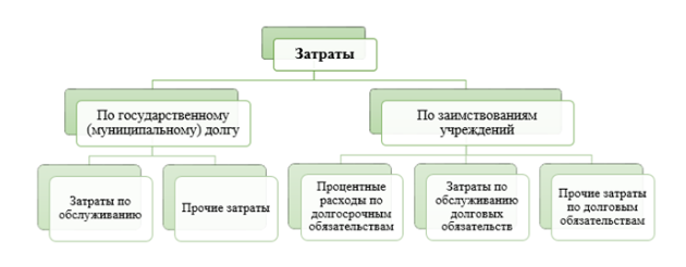 Стандарт выделяет затраты по государственному (муниципальному) долгу и затраты по заимствованиям учреждений.