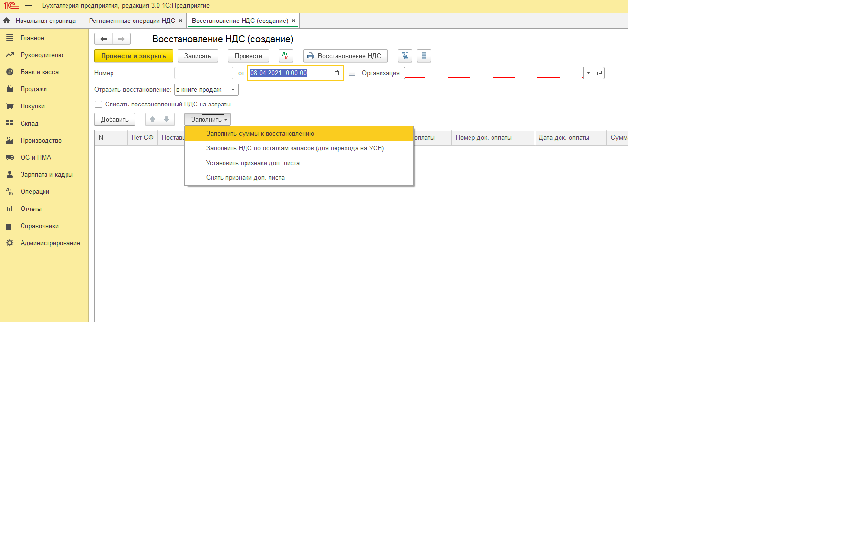 Возможно требуется просто восстановить часть ранее принятую к вычету, а сейчас распределенную. Посмотрите в Операции/ Регл.операции по НДС/ Восстановление НДС - заполнить суммы к восстановлениею