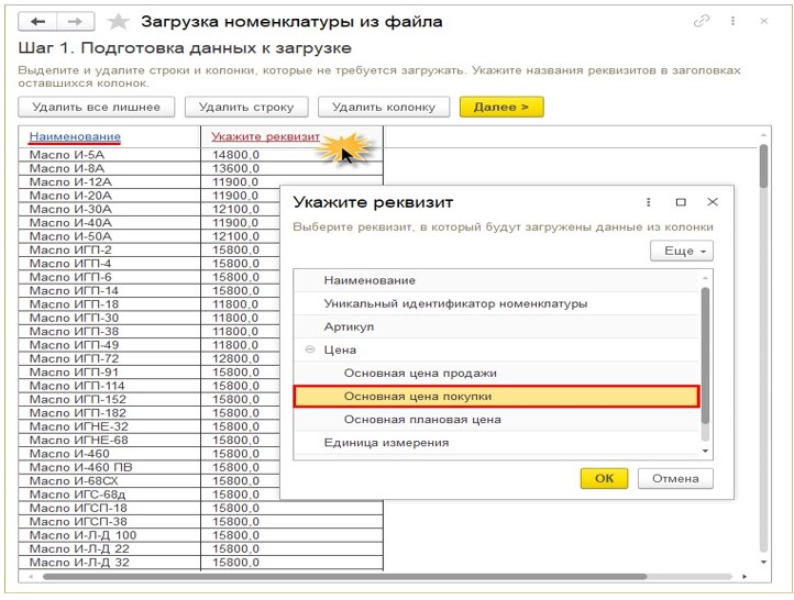 При верном заполнении «1С:УНФ» загрузит из документа цены перечня справочника номенклатуры.