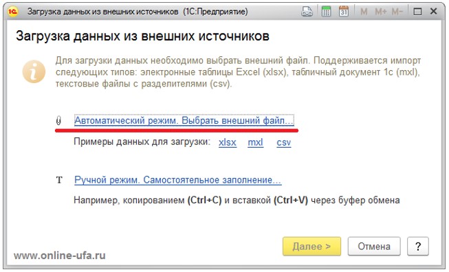Шаг 2. Выбираем «Автоматический режим. Выбрать внешний файл».