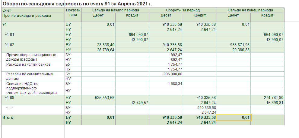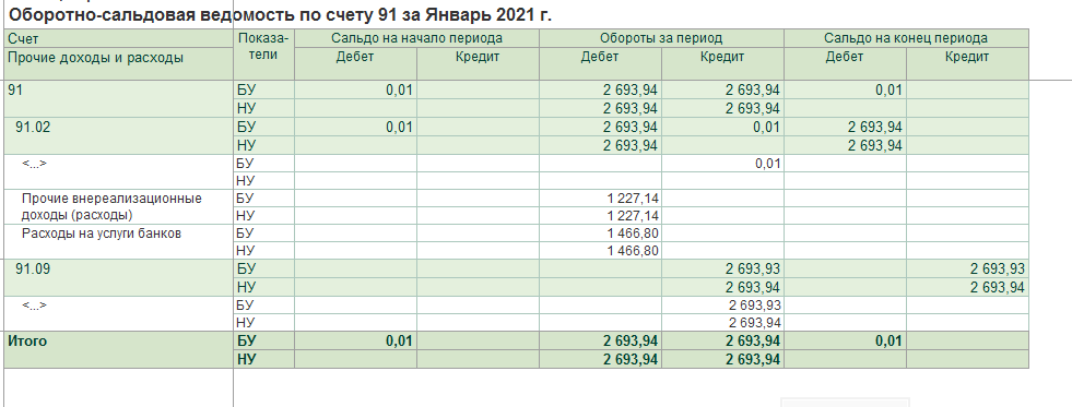 Обнаружено несоблюдение правила: СуммаБУ = СуммаНУ + СуммаПР + СуммаВР для оборотов счета 90.02.1.