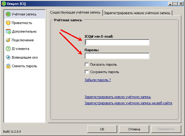 Далее два сценария: у нас уже есть учетная запись для общения в сети и такой записи нет ее нужно создать.