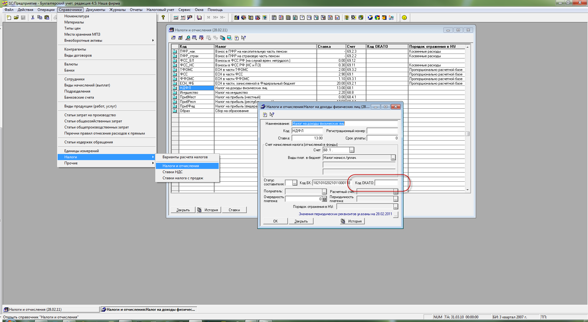 Я делаю 2 НДФЛ, и там автоматически ставиться ОКАТО. И где в программе мне забить ОКАТО?