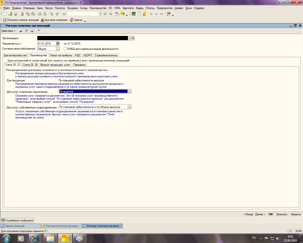 Нет базы распределения прямых расходов: Счет учета: 20.01. Подразделение: Основное. Номенклатурная группа: Основная номенклатурная группа. База распределения: плановая себестоимость продукции. как мне изменить учетную политику??? |