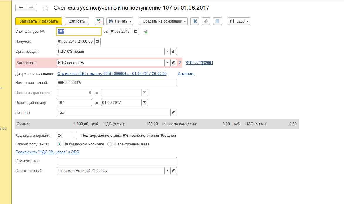 На его основание заводите счет-фактура ПОЛУЧЕННЫЙ с тем же номером как в документе счет-фактура выданный от 01.06.2017. картинка 3