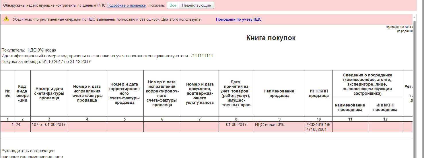 тут речь о том, что при действии по инструкции, ошибка в книге покупок