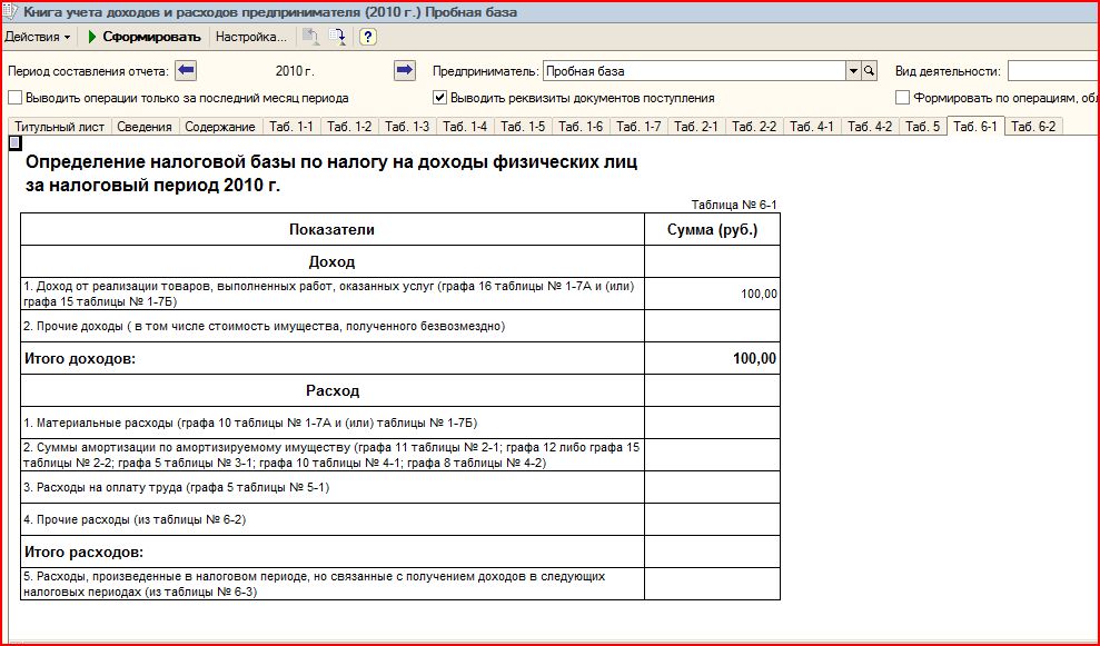 Ввел эти данные в программу 1С:Предприниматель. Пока выяснил одно, сумма материальных расходов, учитываемых при определении налогооблагаемой базы, зависит... от названия товара!? Пока программа выдала два варианта: 1 - 20.00, 2 - 30.00. Как видим, разница в 1,5 раза и при больших оборотах может быть очень существенной. А что касается Книги учета доходов и расходов, то программа выдает ее в таком виде, что разобраться, почему именно так, не представляется возможным. |