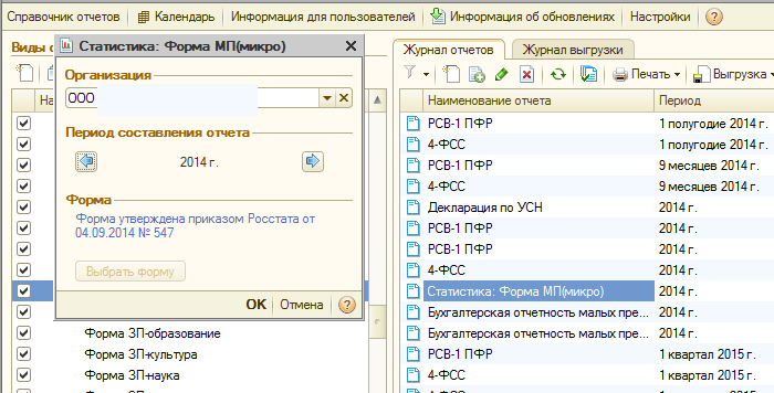 Стала создавать форму МП (микро) в Росстат, за 2015 год. Форма стала не активной, при создании выбирая 2015 год , кнопка ок не активна и не указано название формы. За 2014 год форму создали без проблем. Никаких изменений учётной политике в программе мы не делали, декларацию, баланс всё заполнили без проблем Прикладываю фотографии. Пожалуйста подскажите в чем дело. С уважением, Людмила |
