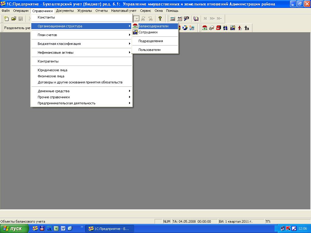 Справочники – Организационная структура – Балансодержатели – Учет имущества казны