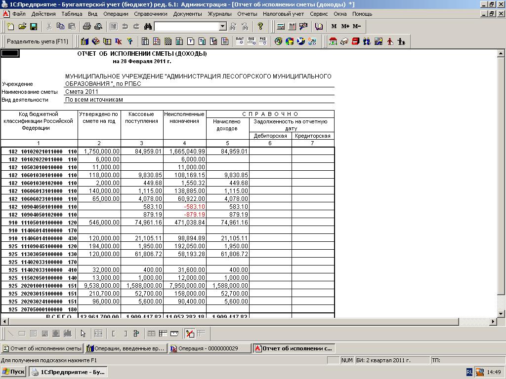 По умолчанию Re: Отчет об исполнении сметы доходы