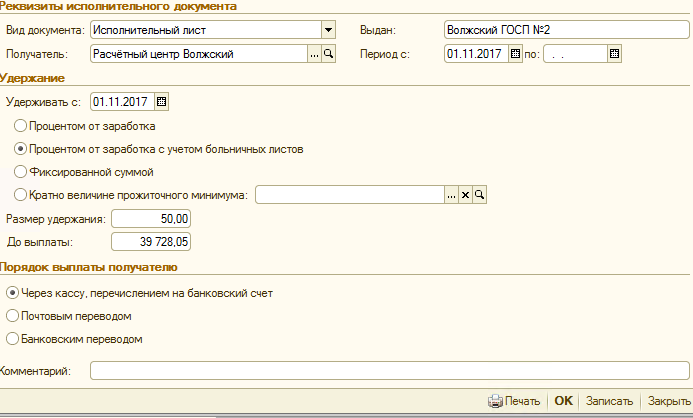 Если проставить сумму "До выплаты" то документ понимает буквально команду и перестаёт производить удержания после того как удержит именно эту сумму. Последний раз редактировалось Б_С_К; 31.01.2018 в 08:57. |