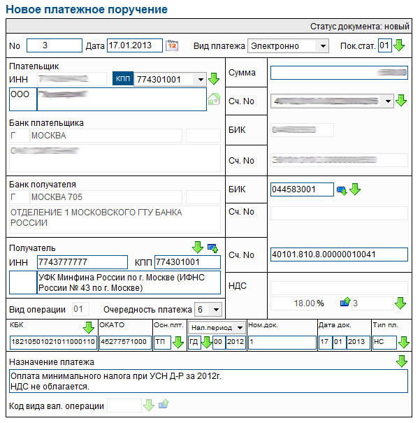 Возник ещё один вопрос - при заполнении платёжки для оплаты минимального налога УСН за 2012 год.