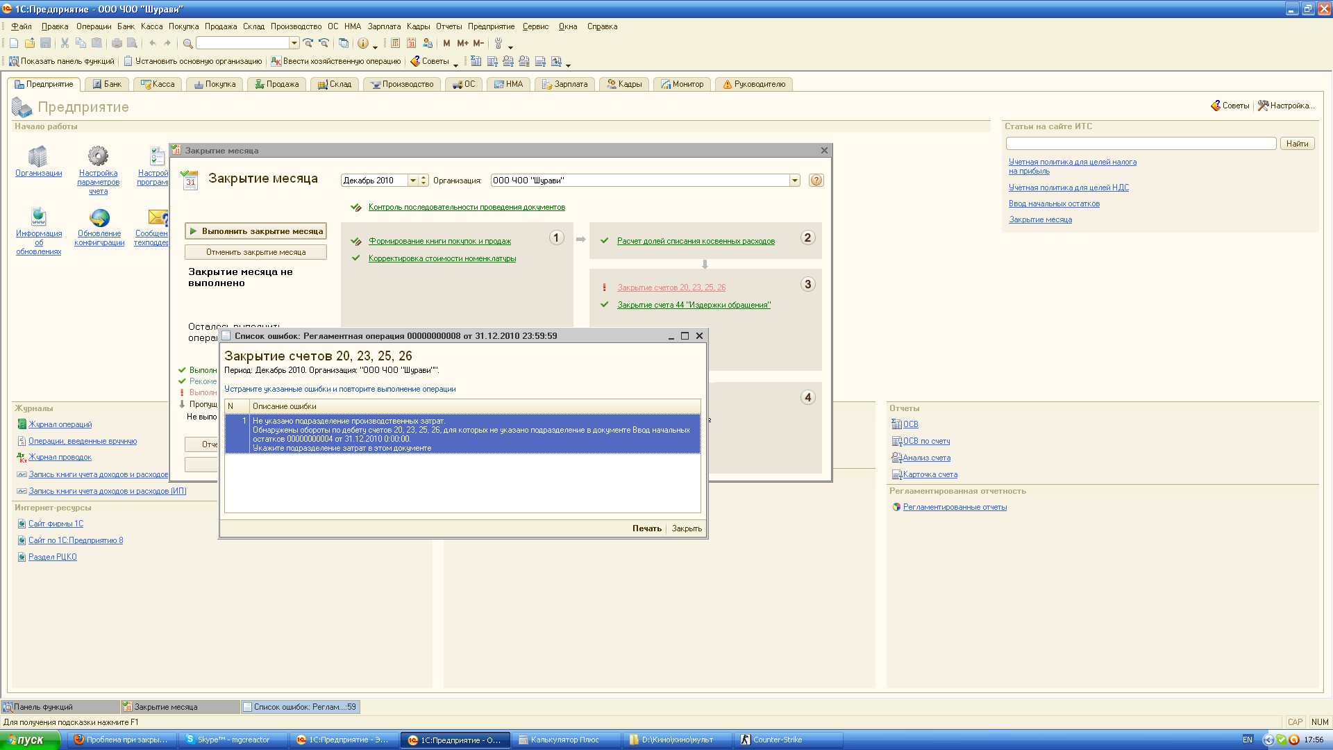 По умолчанию Re: Проблема при закрытии месяца в 1С 8.2