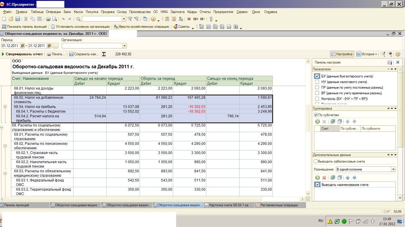 за какой период проводки? что в декларации с прибылью за тот же период?