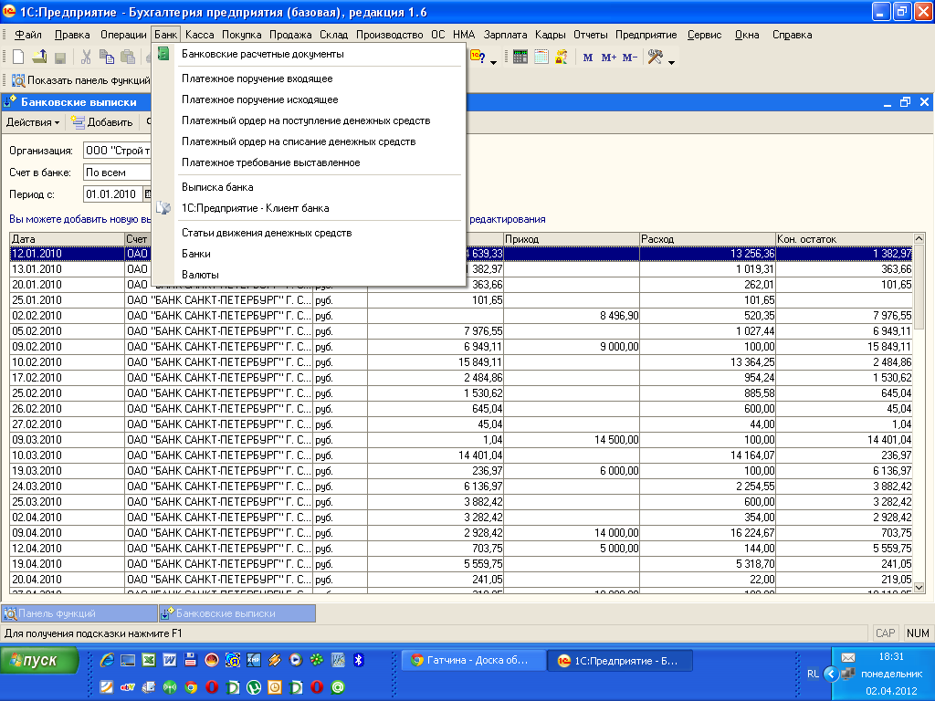 кто-нибудь сможет разъяснить такую ситуацию: из 1С 8.1 в 8.2 была скинута инф.база. Во вкладке БАНК присутствуют Платежный ордер на поступление ден.средств и Платежный ордер на списание ден.средств