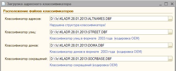 Загружаю КЛАДР 2010 года, много раз уже загружавшийся в другие базы. Пишет что классификатор не правильной структуры.