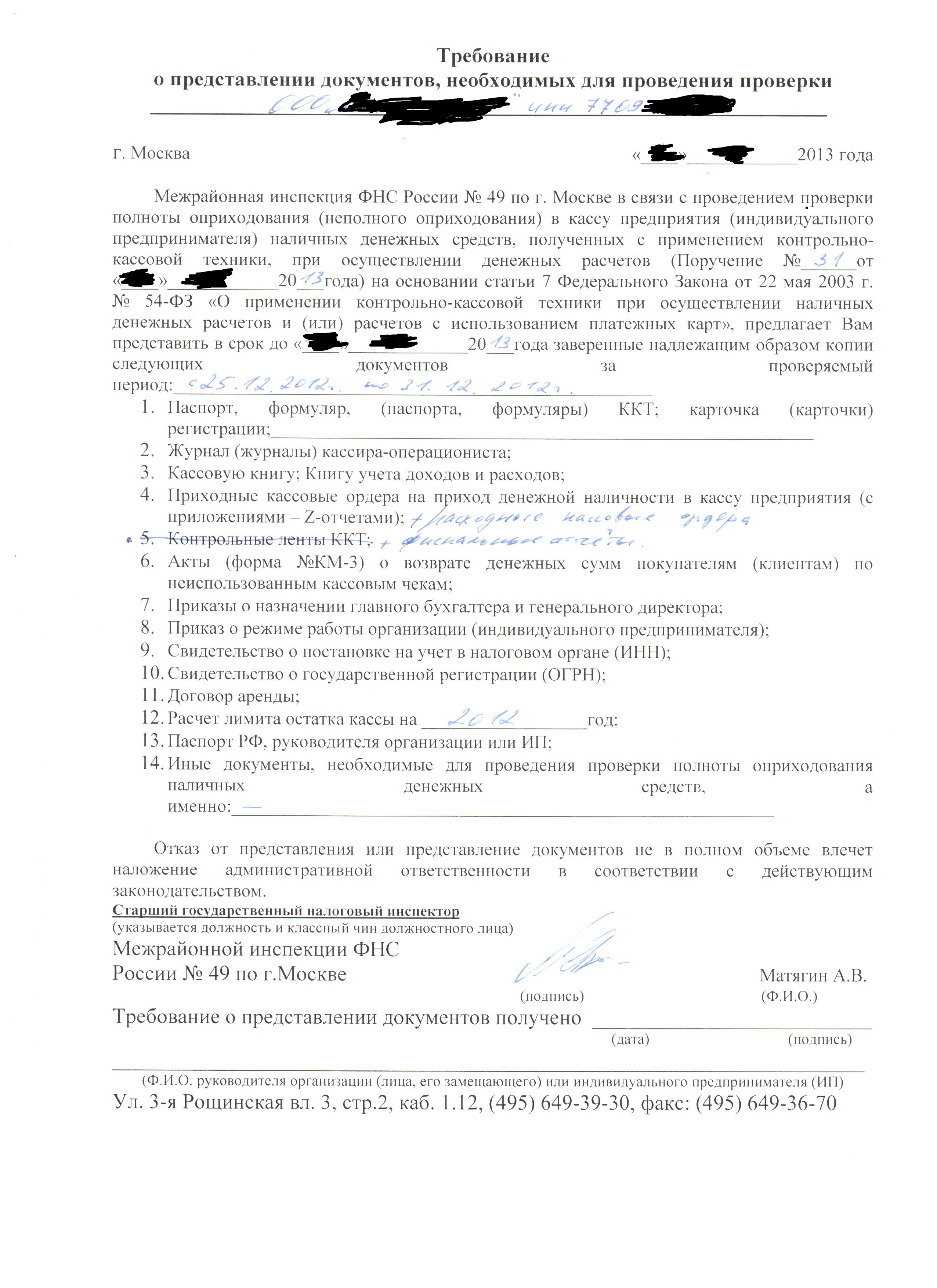 Прислали требование (во вложении). Я так понимаю, что хотят проверить лимит кассы и кассовую дисциплину.