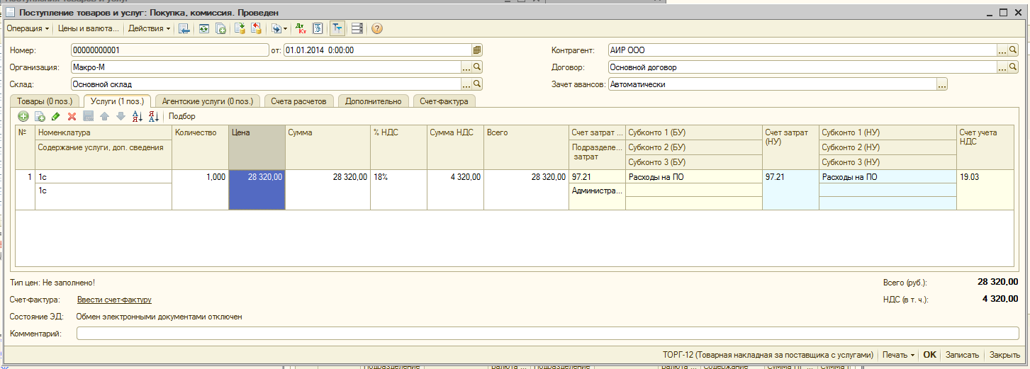 СубконтоКт1 создал новую строку в которой указал суму без НДС, и период списания год првильно ли я все сделал? |