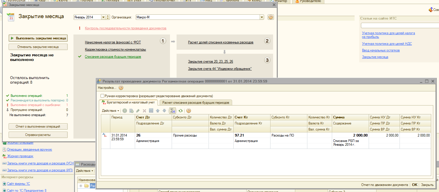 "Дебет 20 (25, 26, 44) Кредит 97 документ закрытия месяца сформирует, если в справочнике расходов будущих периодов настроите на равномерное списание с указанием периода"