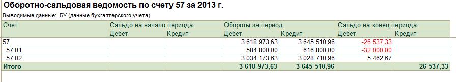 1. счет учета денежных средств в пути 57, показывает сколько денежных среств отправилось в путь (оборот по дебету) и сколько из него вернулось (оборот по кредиту), по вашим данным вернулось больше чем отправилось, чего быть не может.