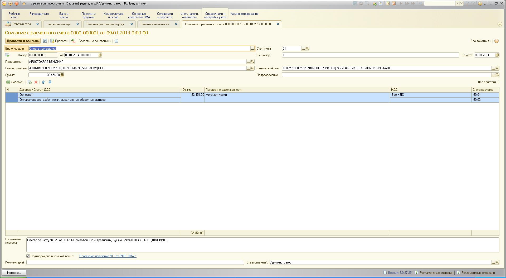 Не очень поняла, что значит задолженность в разрезе документов. Задолженность погашается автоматически, в оплатах документы не указываются. Буду у другого компьютера, попробую сделать скрины.