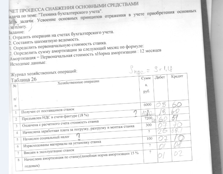 №1 указана сумма с ндс или без - без НДС на 08 счет и НДС сверху будет. №3 почему оплачено 7200? даже если считать 6 тыс +ндс = 7080.... - скорее всего, чтобы запутать, это же задача . А если серьезно, то очень давно НДС был 20% и с тех пор вашу задачу Преподаватель не менял, тогда будет 7200= к уплате.№5 какой именно налог, на что именно - соц налог ПФР, Мед страх, ФСС общий без ФСС НС и ПЗ (травматизм). Остальное смотрите во вложении по закладкам. |
