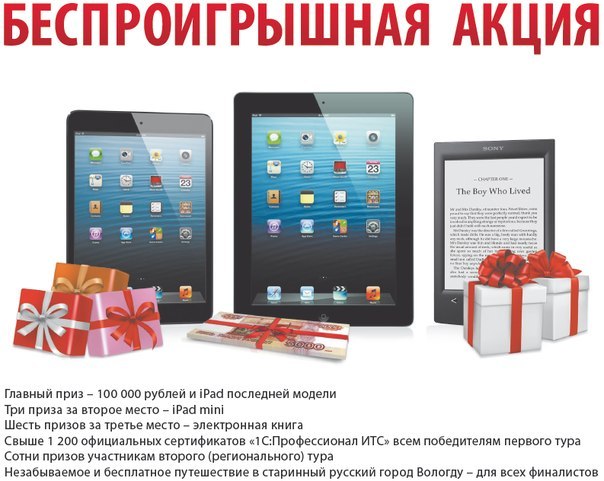 Это беспроигрышная акция, так как каждый участник конкурса получает полный и БЕСПЛАТНЫЙ доступ к системе 1С: ИТС!