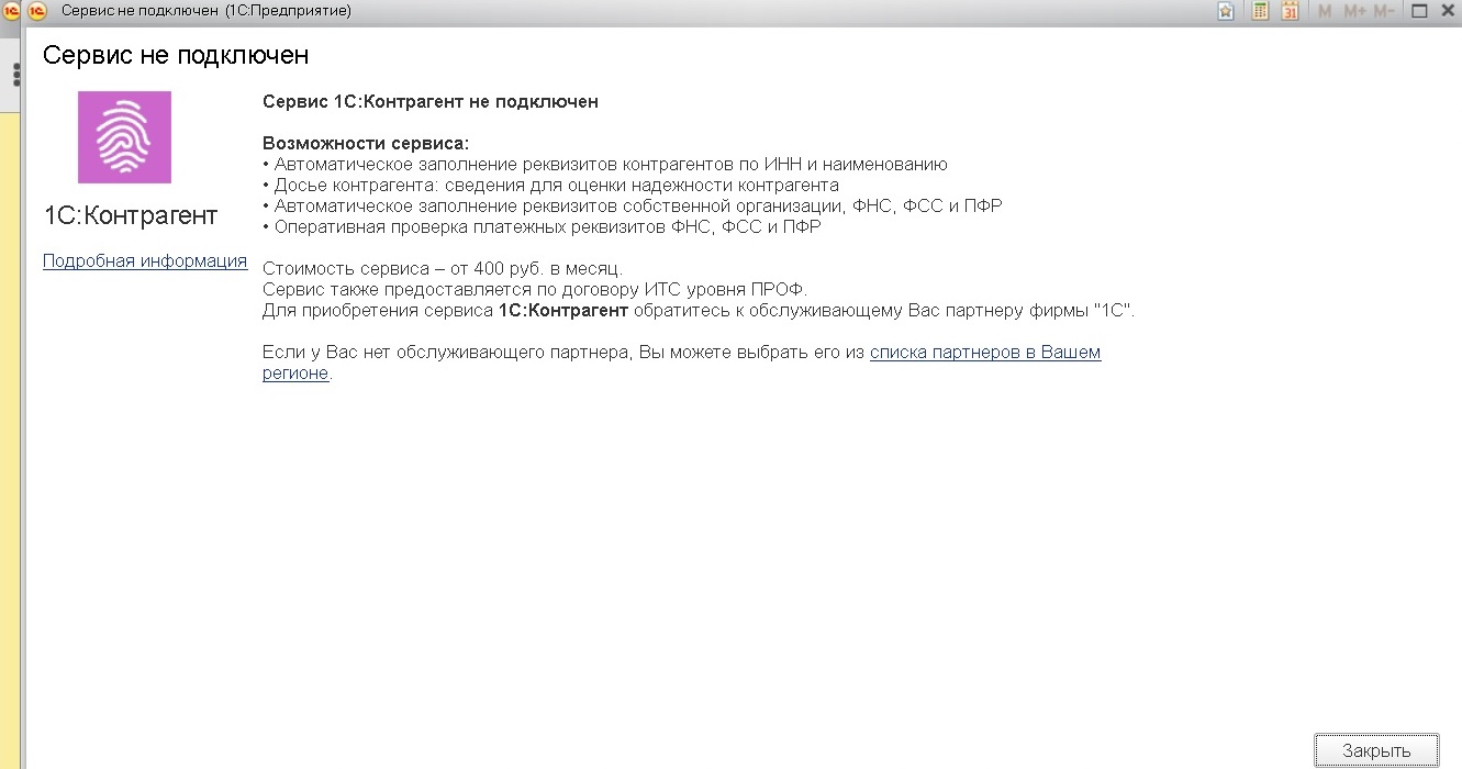 По умолчанию Re: Невозможно бесплатно завести контрагента по ИНН